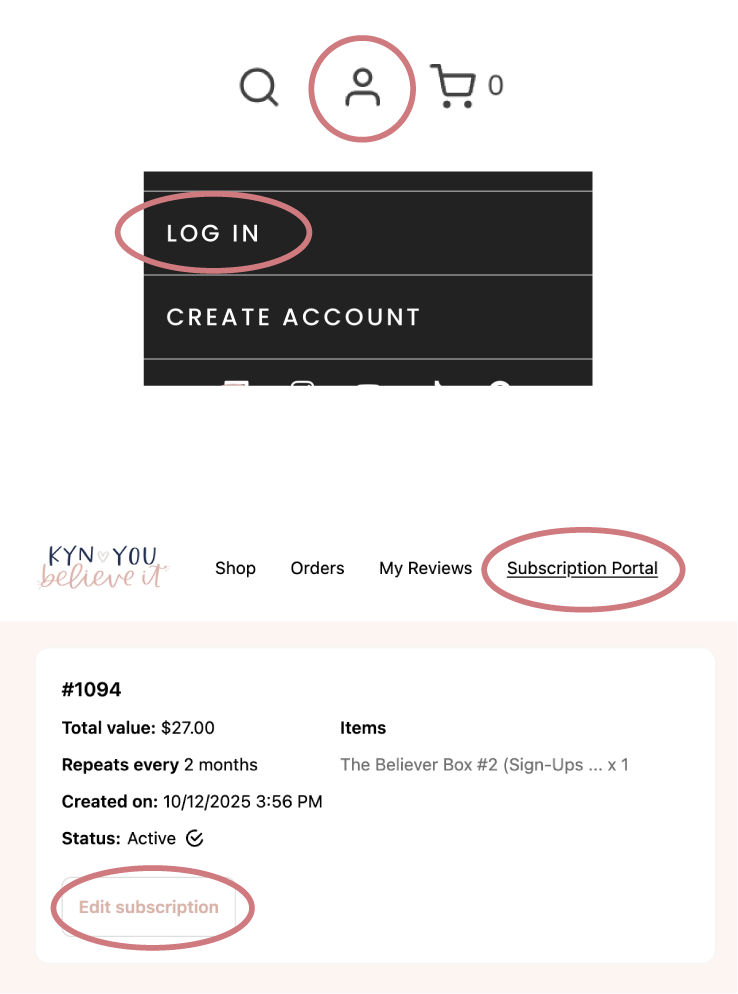 Kyn You Believe It is proud to offer two subscriptions to our customers! Below you'll find FAQs about The Believer Box and Kyn You Color It, as well as tutorials on how to edit your subscription if/when needed.
