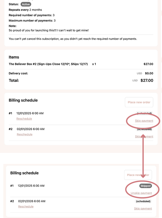 The Believer Box subscription has a 3-box minimum, and if you have not met this minimum, the cancel button will not be available. Please contact us if you need to cancel before reaching the minimum.